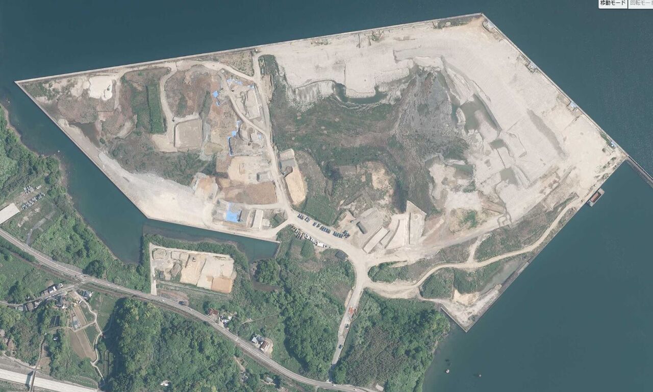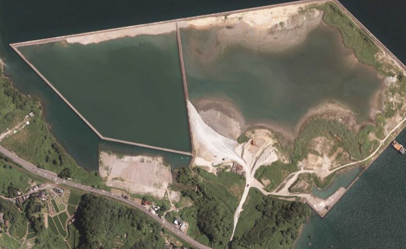 堤防で囲われた巨大な造成予定地が姿を現し、あとは埋め立てるだけになっています。