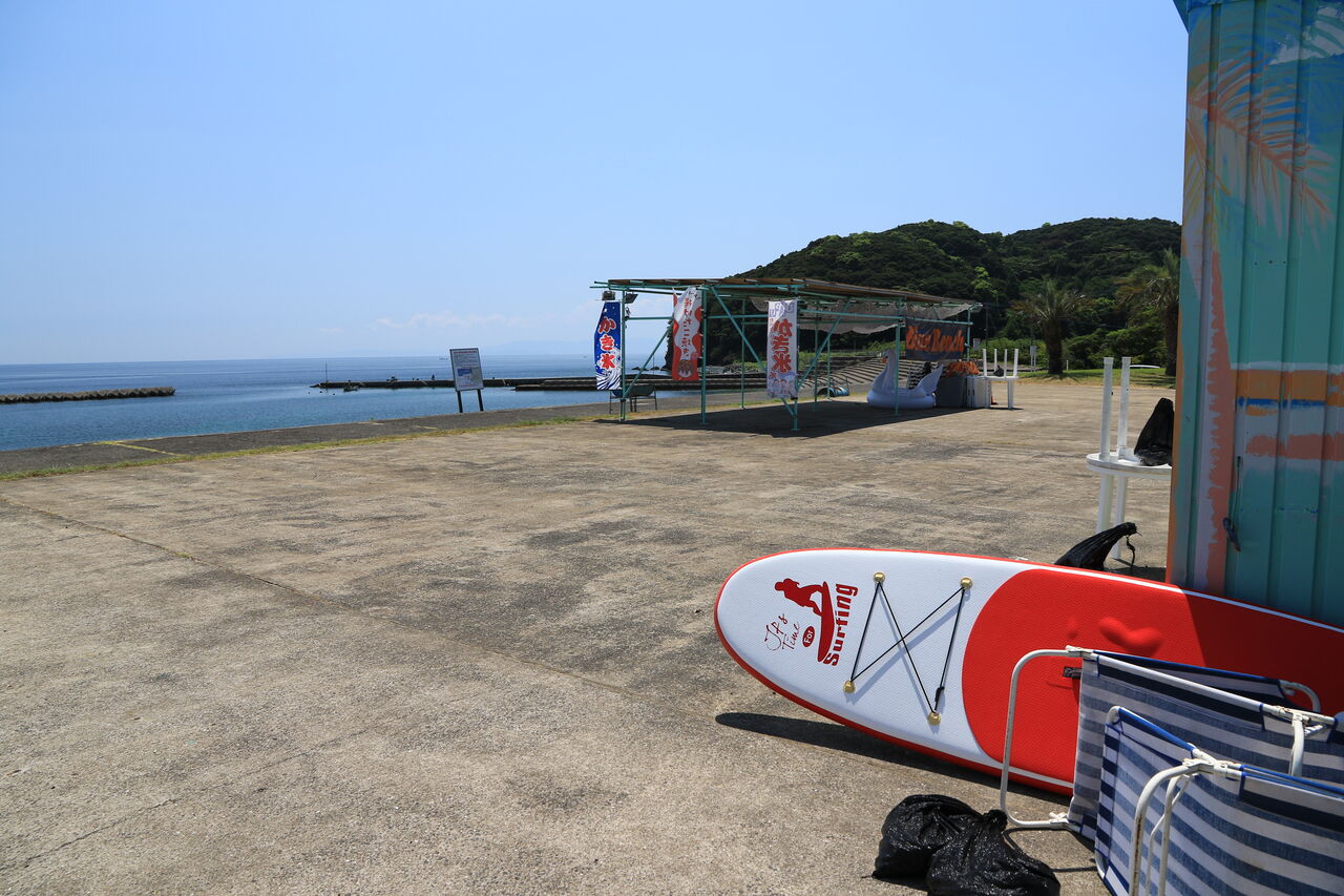 やっと海水浴場らしい売店や遊具の貸し出しを見つけました!