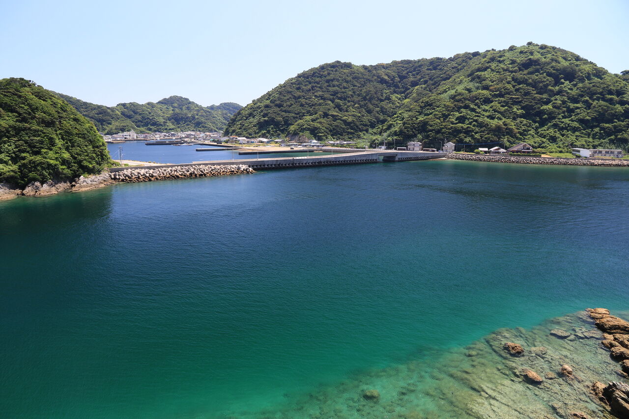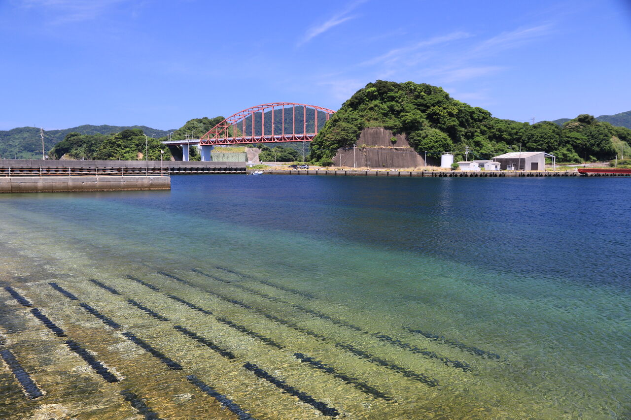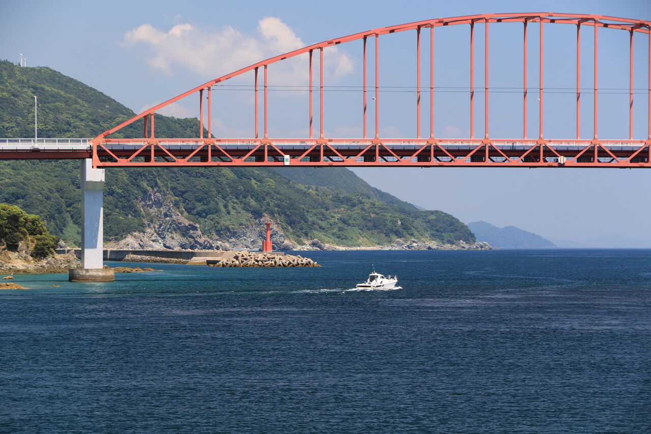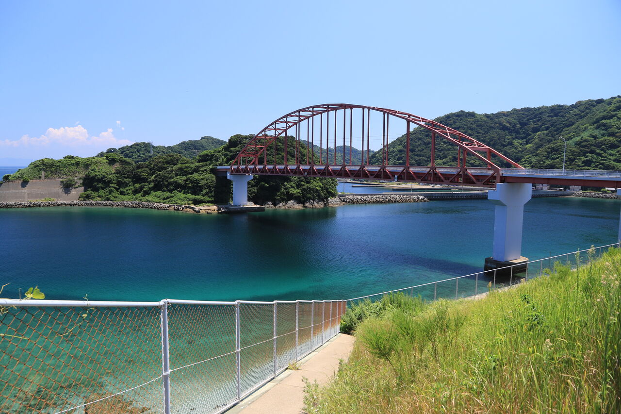 1986年(昭和61年)開通した樺島大橋、本土側と中継地点の「中島」の間227mを繋いでいます。