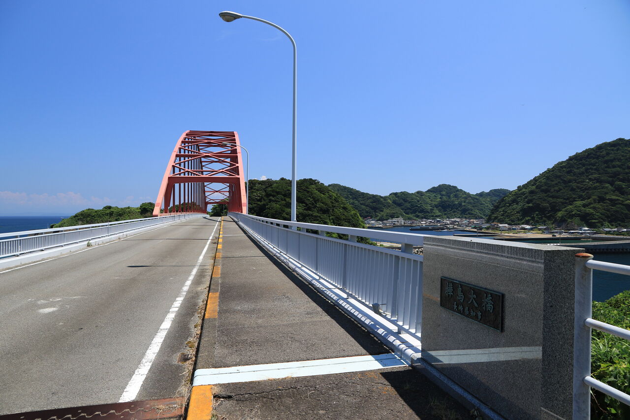 赤い「樺島大橋」を渡って樺島へ上陸。