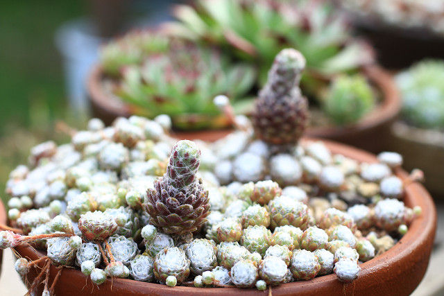 気候が合っていたのでしょう、糸も良く巻いています。ぼんやり写っていますが、他のセンペルビウムも今年はよく成長しています。