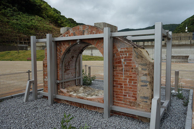 レンガ遺構で目地はイギリス輸入のセメント、周辺は天川(あまかわ)と呼ばれる日本古来のセメントが使用されています。