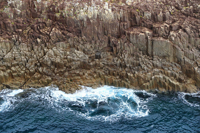 奥行き200m、幅10m、高さ70mの柱状岩の絶壁。