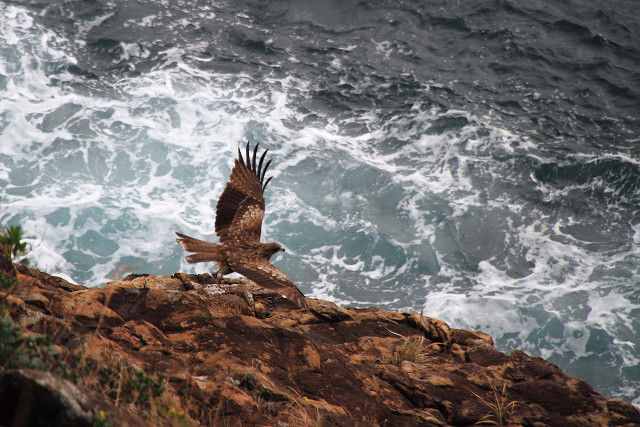 柵から身を乗り出し、「落ちたら終わり」を感じながら岩場の猛禽類を狙った。