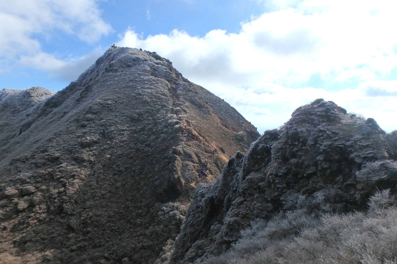 4月に発生した熊本地震の影響で、由布岳・鶴見岳は8月まで入山が規制されていましたが、登山道は特に問題無く、天気にも恵まれ、また山頂では霧氷を楽しむことができ、充実の登り納めとなりました。