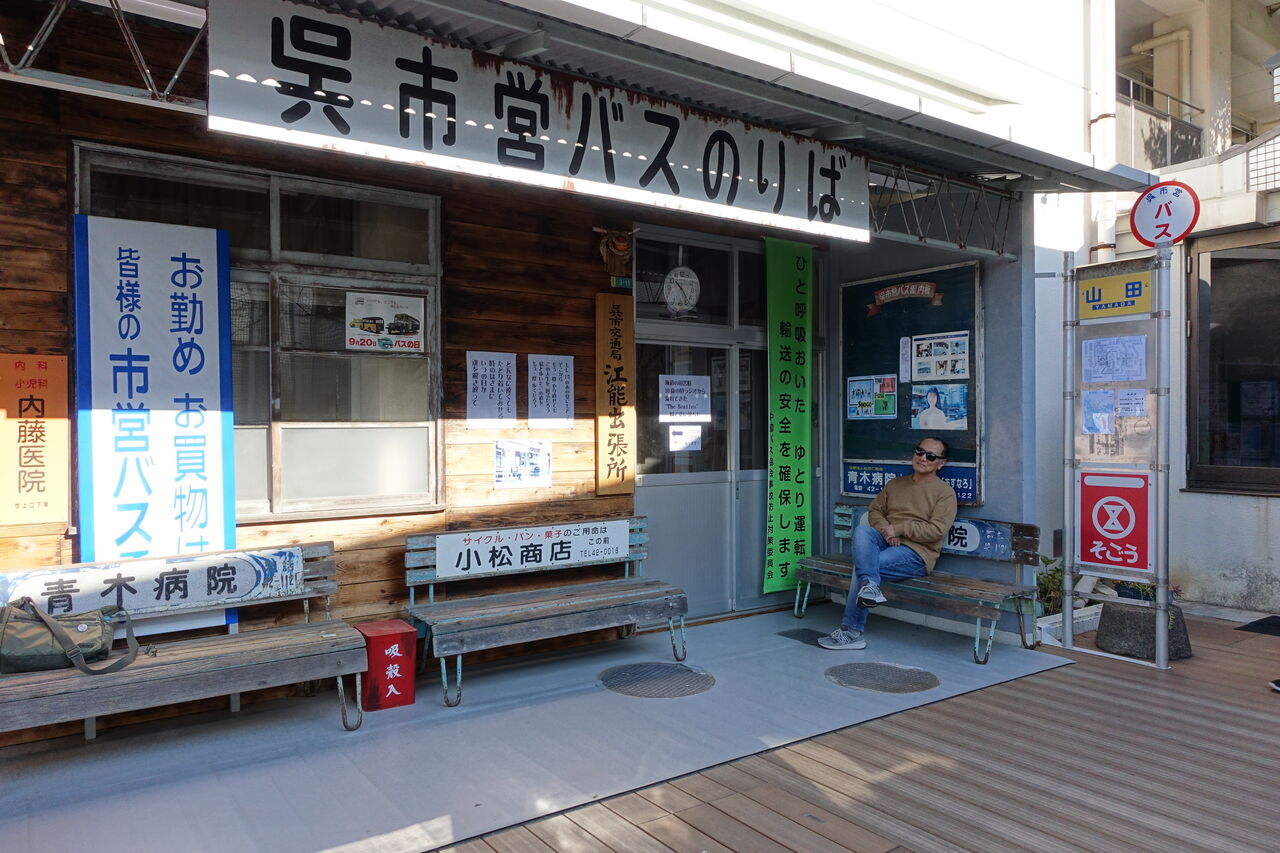 再現されたバス停で浜省と同じポーズで写真を撮ってみました。